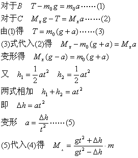 (1)让砝码B和待测物体C在同一高度H的位置上,使这一物体系统运动。
