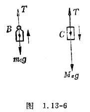作两物体的受力示意图(如图1.13-6所示)。列出两物体的牛顿第二定律方程。