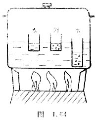 将平底的深、浅茶杯各一只均倒半杯冷水,取同样的浅茶杯倒半杯高度数的白酒,把三只杯子一起放入饭锅中。向锅里加冷水,至两浅杯浮起,深杯仍沉在锅底为止。盖锅盖,置于旺火炉上加热,如图1.64。