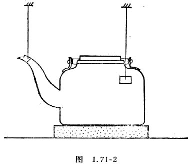 将面积相等的两块铝箔,用钓鱼尼龙线挂起来,一只卷在铝壶嘴上,一只贴在壶身壁上,壶放在绝缘座上,如图1.71-2所示。用感应方法使起电盘带电,再使金属盘与壶内壁接触,重复多次,使壶身带上足够多的电荷。分别从壶上取下铝箔,与验电器接触,比较两者带电量的多少,可以近似地看出电荷的分布与曲率的关系:曲率越大,分布的电荷量越多。