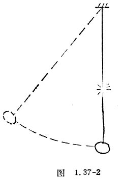 /SPAN>=mv2/R,速度越大,需要的向心力就越大,线的张力T=mv2/R+mg也越大。因此,实验时可以用逐渐增大偏角的方法,找出断线时的偏角(如图1.37-2)。再由机械能守恒定律公式算出重物经过平衡位置时的速度,也就不难求出线的最大张力,即极限强度。