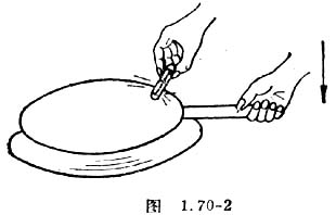 用丝绸摩擦塑料唱片,使唱片带上尽可能多的电荷,然后手持氖管与带绝缘柄的金属盘接触,迅速把金属盘盖到唱片上,你可以看到氖管的一极起辉如图1.70-2。起辉熄灭后,你再迅速把金属盘移开,又可以看到另一极起辉。请做一下这个实验,仔细观察氖管的哪一极起辉,并用你所学过的知识来解释见到的现象。