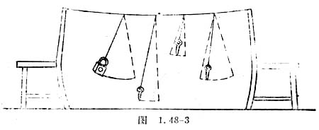 拔两把椅子,使它们的椅背相对,椅背之间连一根细绳。再取锁和钥匙数把,用线把它们悬挂在椅背间的细绳上,如图1.48-3所示。