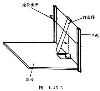 硬币发射架的结构如图1.43-3所示,由底板,支架和打击杆组成。底板上开有一槽,槽宽略大于贰分硬币的直径。