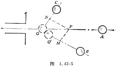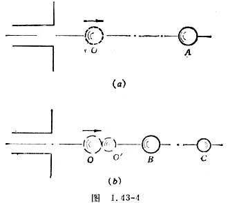 ,如图1.43-4(a)所示。再把一只壹分硬币放在O点前,使其圆心O′在发射线上,且OO′=R+r(R、r分别为大小硬币的半径)。然后重新发射贰分硬币,碰撞后分别测出两硬币前进的距离OB和