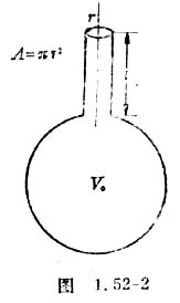 最后,选瓶颈粗细不同,而长度L,空腔体积v0基本相同的瓶子进行实验,看着频率f与瓶颈内截面积A有什么关系。请把你的发现记录下来。对于共鸣腔的发音规律,德国物理学家、生理学家亥姆霍兹(Hermann Vons Helmnoltz 1821~1894)曾经做过实验研究。他研究了如图1.52-2所示的共鸣器,发现这种共鸣器的频率