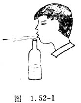 在家里你可以找出各种各样形状的空瓶,把嘴唇贴在空瓶口上吹气(如图1.52-1所示),看看用它们吹出的最低音(基音)的音调高低都跟哪些因素有关系。