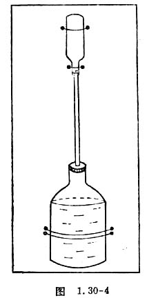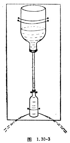 (2)如果将上述木板倒置过来,使大瓶在下,如图1.30-4,由于水位变低及表面张力的作用,水不从大瓶孔中流出。若手持木板向上做加速运动,水会流出吗,也请你试一试,并说明原因。