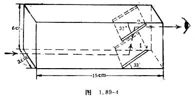 去玻璃店购裁下的镜子边角料和毛玻璃边角料4×4(厘米)左右各一片(若无毛玻璃片,可用同样大小的透明玻璃片,将其一面用砂轮碎片磨毛代用),然后拿电工用的黑胶布贴在毛玻璃片粗糙的一面上。把小平面镜插入镜筒下面的刀切细缝1中,反射面向上,同样,把毛玻璃片插入刀切细缝2中,把贴黑胶布的一面向上,平滑面向下对 着平面镜。