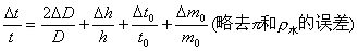 通常对仪表的读数误差,取其最小刻度值的一半作为最大绝对误差。例如,用最小刻度为厘米的直尺测桶的直径和高度,则ΔD=0.5厘米,Δh=0.5厘米,用最小刻度为1秒的手表测时间,ΔDt0=0.5秒。这样你就可以算出总的相对误差和绝对误差。离开的时间