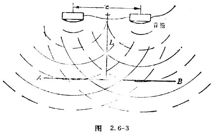 将收录机外接两只较小的单扬声器(喇叭)音箱,使两只音箱并排放置,彼此相距0.5—1米。播放事先录好的频率为2—3千赫兹的音频磁带,或者将音频信号源的输出接 录音机的话筒插口,使两只扬声器发出音频声波。然后在离两扬声器连线3—6米的位置上用耳朵监听,在两扬声器连线的平行线(例如AB)上向一个方向走动(如图2.6-3),你可以感觉到声强相继出现极小和极大的现象,这是声波干涉的结果。在声强极大点,到两个扬声器的波程差等于声波波长的整数倍,在声强极小点,到两扬声器的波程差等于声波半波长的奇数倍。通过实验你可以大致验证声强极大(或极小)的间距满足公式Δx=λ·L/a(λ是波长,a是两声源的距离,L是监测 点离声源连线的距离)。