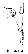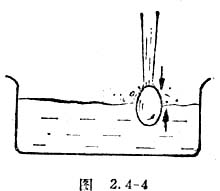 (2)在自来水下方放一水盆,盆里放一只煮熟的鸭蛋,鸭蛋空的一头朝上漂浮于水中。打开水龙头,水朝着鸭蛋冲下。可以看到,鸭蛋并不被水冲走,而是围线着水束的轴线晃动和上、下浮沉,如图2.4-4所示。