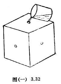 如图(一)3.32,这是一个边长为15厘米的正方体空心黑箱。它的上、下、前、后、左、右面的正中心都有一个直径为1厘米的孔。