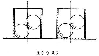 用一只小型的装洗洁精的塑料瓶,制成一个有底的圆桶和一个两头通的圆筒,另找两只弹子,使弹子的直径大于圆桶或圆筒的半径,但小于它的直径,分别把弹子装在圆桶内和圆筒内,用手扶持住圆桶或圆筒,放在桌上,如图(一)3.5所示,两者的区别为圆筒只少一个底。把扶持的手松开,看一看会有什么不同的现象发生?原因何在?