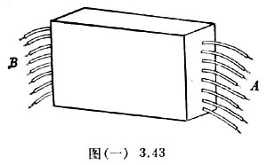 一个黑箱,两端A、B分别有八个输出、输入端子,它模拟一根八芯电话电缆,如图(一)3.43所示。