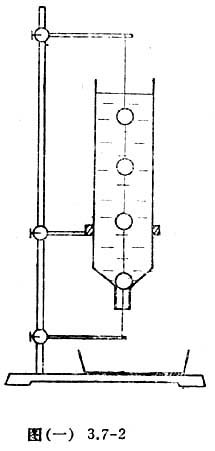 找一只塑料瓶,把瓶底去掉,倒置。再取3—4只乒乓球,用一根线从它们的直径穿过,均匀地分布于线上,并用胶水粘牢。按图(一)3.7-2所示把线的上、下端固定, 在容器中注满水,然后把线的下端剪断,看看这些球是否能在浮力的作用下向上运动?正确分析和解释你所见到的现象,这种永动机的荒谬之处也就揭露出来了。