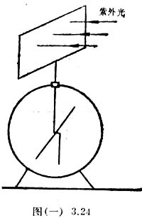 在验电器的金属杆上固定一块表面用砂纸打光的铝板,给铝片带上某种静电荷,验电器的指针张开。当用紫外灯对铝板照射时,指针闭合[图(一)3.24]。请你探索一下指针闭合的原因是什么?为你提供的器材还有:丝绸、玻璃棒和白炽灯。