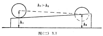 通过观察,你可以发现这个轨道的下端窄而上端宽,再进一步观察,你能看到旋转体放在下端时,卡在轨道里的部分较少,重心较高;而当它放在上端时,卡在轨道里的部分较多,重心较低,如图(二)3.1所示。难怪旋转体要向上端跑呢!这并不违反能量守恒定律。