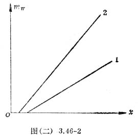(2)当秤砣的质量增至原来的2倍时,其图象如图(二)3.46-2所示。可以看出,斜率变为原来的2倍,截距也变小了。斜率表示杆秤的灵敏度的倒数,k=Δmw/Δx。a=1/k,k越小,a越大,灵敏度越高,对相同长度的杆秤而言,mT越大,总称量也就越大。