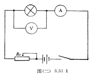 (1)实验电路如图(二)3.51-1所示。由于电珠电阻较小,所以选用电流表外接法。