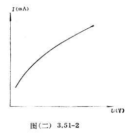 (2)一组实验数据描出的I-U图象如图(二)3.51-2所示。由图可以看出随着电珠外加电压的增加,通过的电流不是线性增加的,增加的比率逐渐减小。这是由于随着电流变化,电阻的温度发生变化,从而使电阻车发生了变化,电珠钨丝的电阻是随温度增高而变大的。