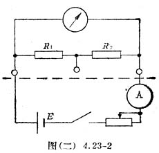 电路如图(二)4.23-2所示,图中,电源选稳压电源,变阻器串联在电路中,标准表从多用[电]表中选择。调节电阻箱阻值R
