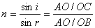 由于从正立方对B点观察,角度很小,可以认为OC≈h,OB≈H,所以n=H/h。改变液面深度重复测定n次,求n的平均值。