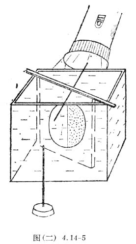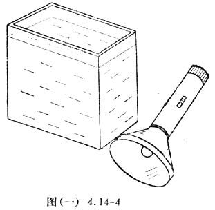 另备方形盛水器(其大小应能使“空气盒”放入其中),手电筒,小型立杆,如图(一)4.14-4。