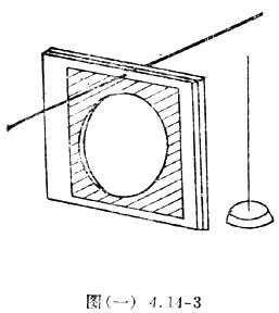 4.按如下方法制作一个“空气盒”:取一张边长为40毫米的正方形黑胶片或黑纸,在中间挖去一个直径约为30毫米的圆孔,再加工两块边长为50毫米的正方形有机玻璃薄板(约2毫米厚)。把两块胶片蒙在两块有机玻璃板之上.胶合起来,使胶片的圆孔处形成一个“空气盒”,如图(一)4.14-3所示。在“空气盒”上端,垂直于盒面,穿一根竹针或自行车钢丝。
