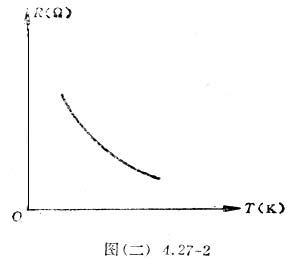 2.半导体热敏电阻是一种新型的测温元件,它的电阻—温度特性曲线如图(二)4.27-2所示,可以看出其阻值随温度升高而很快减小,用它来设计测温计或传感器是很灵敏的。