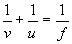 如果y=1/v,x=1/u,则y=-x+1/f。因此斜率为-1,在轴上的截距均为1/f。
