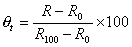 如果热敏电阻的阻值在冰水中为R0,在沸水中为R100,在θt时为R,按上述的普遍方程式,这只热敏电阻温度计标度的温度表 达式为