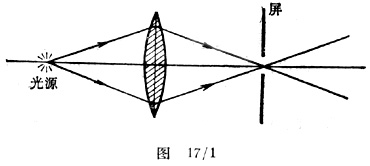 白炽灯是以热辐射形式发射光能的电光源。它的发光材料为钨丝,通电后的钨丝温度可达2500K并白炽发光。灯泡内抽成真空后充进惰性气体以减少钨的蒸发。白炽灯的光谱为连续光谱。可作白光光源和一般照明用。作白光光源时,最好把灯泡放在开有狭缝的不透明的屏后。狭缝常为“I”字形,也有弧形的;如果狭缝中间有细的十字形交叉的线,常常会有用处的。直接把灯泡放在狭缝后面时,仅有少部分光线通过狭缝,为了尽量利用光能,可以如图17/1所示,使用一只凸透镜。
