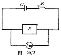 按图29/2安装线路,其中C是电池,R是电阻箱,K是按键开关,Vm是伏特计。