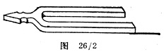 如图26/2所示,把一根猪鬃或金属丝固定在音叉上。(金属丝可以焊接到音叉上,猪鬃可以用黄蜡固定在音叉上。)因为任何负荷都会使音叉的频率减小,所以要尽量减少加到音叉上的额外负荷(如焊锡或黄蜡)。