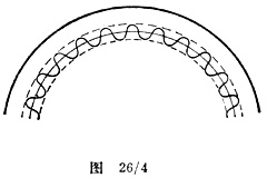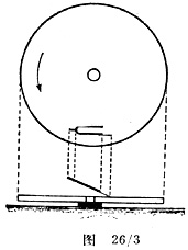 如图26/3所示放置音叉,当转盘旋转时猪鬃将在熏黑的纸板上记下一条白线。启动马达,同时使音叉振动,并慢慢地放下者叉以使猪鬃恰好触及纸板,最少记下四分之一圆周长的圆的波形轨迹。