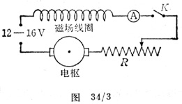 按图34/3安装电路。其中A是安培计,R是变阻器,K是插塞开关。