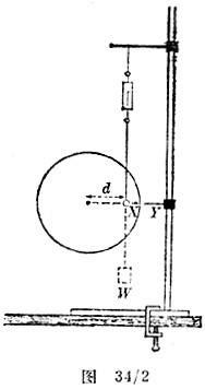 按图34/1安装电路,并按图34/2所示安装圆盘和弹簧秤。