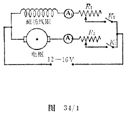 在图34/1中,A1和A2是安培计,R1和R2是变阻器,K1和K2是按键开关。