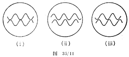 再按图35/11(iii)连接电路,使上方的波形显示电感器两端的电压,为了便于比较两个波形,作和前面相同的调节,其结果如图35/11(iii )所示。