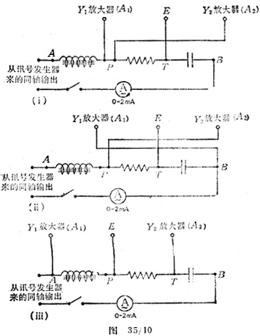 按图35/10安装电路,接通讯号发生器电源,让它预热几分钟使之稳定,暂时不要接示波器。为便于变换元件,在元件和示波器之间用直径为4mm的插口和长引线连接。
