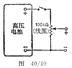 如果所需电源只有几毫安就可以使用高压干电池;如果需要连续变化的电压,就可以如图40/10所示,把一只分压器接在干电池两端,这个分压器可以是一只不小于100kΩ。3-5W的电位器。