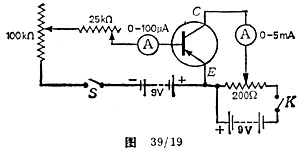一只9V电池;J1201型低压电源一台;两只可变电阻:一只25kΩ,另一只100kΩ;一只200Ω滑线变阻器;微安表(0-100μA);毫安表(0-5mA,或0-10mA);单 刀单掷开关;3AX81三极管。