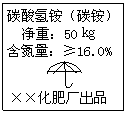 (2004年宜昌市中考试题)19.我到外婆家去作客,见外公购回了一袋碳铵(化学式是NH4HCO3)化肥,印在包装袋上的部分说明如左图所示,对此,我有许多问题要探究: