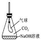 1、由于CO2与NaOH反应,锥形瓶内气压减小,所以气球涨大 2、不能证明CO2与NaOH反应,因为水能溶解二氧化碳也能与之反应,都能使锥形瓶内气压减小。 学生自行设计的实验方案,从2条思路来证明: ① 证明锥形瓶内气压减小或者用②检验反应的生成物 选择了第②种思路: 在反应后的溶液里滴加HCl,如果有气泡产生,证明反应后的溶液中含有碳酸根,间接说明CO2与NaOH发生了反应。 |