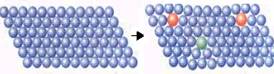 〖交流讨论〗 1、合金的组成与性质有什么关系? 2、金属的内部结构如图所示,为什么合金的硬度比纯金属大、熔点比纯金低?