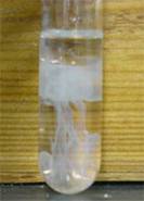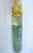 [继续陈述]溶液中的氢氧化亚铁沉淀由白色→灰白→灰绿→直至最后会变为红褐色(灰绿色为中间产物,展示放置一段时间的氢氧化亚铁样品,关注有三段颜色)