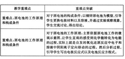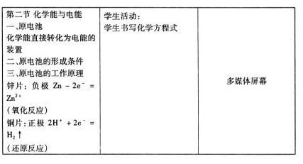 这部分的教学内容分为原电池的工作原理和原电池的构成条件两部分。为了更好地完成教学目标,达到良好的教学效果,采用分组探究,再结合设疑法,分析推理和比较归纳法等教学方法,并结合多媒体进行教学。
