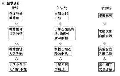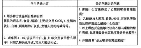 2.过程与方法目标:通过设计实验证明乙酸酸性,培养学生设计实验和动手操作实验的能力。通过酯化反应的分组探究实验,培养学生对比的思维方法。