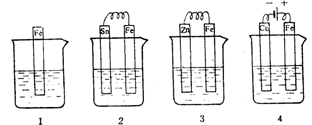 2.下图各容器中盛有海水,铁在其中被腐蚀时由快到慢的顺序是 ( )。